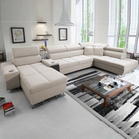 Ecksofa mit Schlaffunktion Castel VII beige linke Seite stilvolles Ecksofa mit Bettzeugablage und verstellbaren Kopfstützen