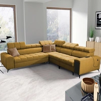 Ecksofa mit Schlaffunktion Bolmso III Senf rechts Ecksofa mit Bettzeugcontainer Vollauszug in der Seite des Möbels