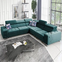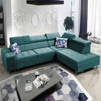 Ecksofa mit Schlaffunktion Dafni II blauer Samt rechtes Ecksofa mit Bettzeugablage Vollauszug