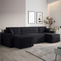 Ecksofa mit Schlaffunktion Brandon U Bis schwarzer Bettzeugbehälter Armlehnen Stoff mit ausgeprägter Schlingenoberfläche