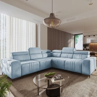 Ecksofa mit Schlaffunktion Castel III blau links Ecksofa mit zwei Bettkästen verstellbare Kopfstützen