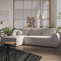 Ecksofa mit Schlaffunktion Cetara IV beige linke Seite stilvolles Eckdesign mit verschiebbaren Rückenlehnen zwei Bettzeugkästen