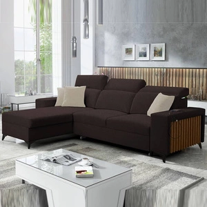 Kelly Ecksofa mit Schlaffunktion braun links geflochten Komfort und Funktionalität Eckseite mit Latten abgeschlossen