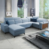 Kelly IV Ecksofa mit Schlaffunktion blau links Samt bequemes Ecksofa verstellbare Kopfstützen seitlich mit Lamellen eingefasst