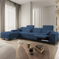 Ecksofa mit Schlaffunktion Penejos XII blau linke Seite stilvolles Ecksofa mit Bettzeugcontainern komfortable verstellbare Kopfstützen