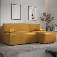 Ecksofa mit Schlaffunktion Rava III honigfarben links samtiges bequemes Ecksofa mit verstellbaren Kopfstützen und einem Bettzeugbehälter