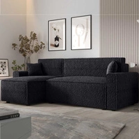 Ecksofa mit Schlaffunktion Brandon Bis schwarz linke Seite weicher Stoff mit charakteristischer Schlingenoberfläche Bettzeugbehälter