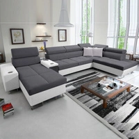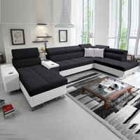Ecksofa mit Schlaffunktion Dafni V schwarz-weißes, linksgeflochtenes, bequemes Ecksofa mit verstellbaren Kopfstützen