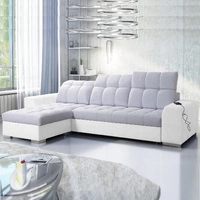 Ecksofa mit Schlaffunktion Dafni Blau/Weiß linksseitig aus Samt bietet Komfort und Funktionalität während der täglichen Erholung