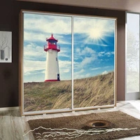 Artistino 155 cm Schiebeschrank mit Strandgrafik wengefarbener Schrankkorpus aus 22 mm starker Platte