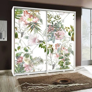 Artistino 205 cm Schiebeschrank mit floraler Grafik Schrankkorpus in Weiß aus 22 mm starker Platte