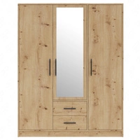 Spiegelschrank Maxione 150 cm Eiche handwerklich funktionaler Kleiderschrank für ein Schlafzimmer Jugendzimmer oder Flur mit Schubladen bereichert