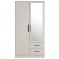 Kleiderschrank mit Spiegel Estan 200 cm beige/anthrazit modernes Möbeldesign Schranktür mit Lamellen verziert