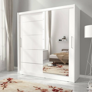 Schiebeschrank Batumi 7 150 cm weiß / weiß lacobel modernes Schrankdesign mit Spiegel und Aluminium-Türführungen