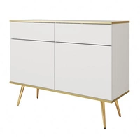 Kommode mit Schubladen Luxury 107 cm weiß modernes Design Wohnzimmer Kommode Körper mit Gold trim hohe Metallbeine gekrönt