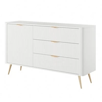 Kommode Luxury 160 cm weiß elegantes Design stilvolle geriffelte Fronten Kommode Körper mit goldenen trim goldenen Metall Beine gekrönt