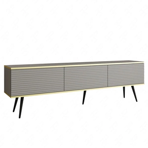 TV-Schrank Luxury 175 cm grau elegantes Design stilvolle geriffelte Front Korpus mit goldenen Zierleisten schwarze Metallbeine gekrönt