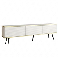 TV-Schrank Luxury 175 cm weiß elegantes Design stilvolle geriffelte Front Korpus mit goldener Zierleiste schwarze Metallbeine gekrönt