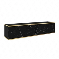TV-Lowboard Luxury 135 cm Schwarzer Marmor Begeistert Liebhaber eleganter Arrangements Korpus verziert mit einer goldenen Leiste dekorative Marmoroberfläche