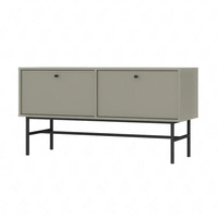 RTV-Schrank Kioto II 121 cm Eukalyptus eleganter Schrank mit nach unten öffnenden Türen gedeckte Farben schwarzer Metallsockel