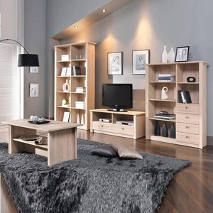 Möbelwand Apulia XVIII weiß glänzend / goldene Eiche extrem stilvolle Möbelwand einfache Elemente, die in jedes Interieur passen