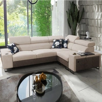 Ecksofa mit Schlaffunktion Cetara III beige rechtsseitiges ergonomisches Ecksofa mit verschiebbarer Rückenlehne und verstellbaren Kopfstützen