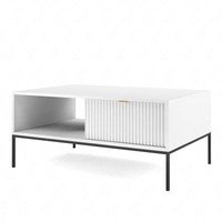 Couchtisch Lovro Weiß mit Schubladen Modernes Design oberflächenbeständiger Tisch gegen verschüttete Flüssigkeiten