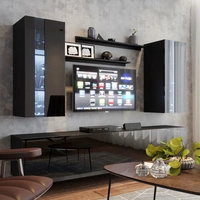 Tasos schwarz / schwarz glänzend minimalistisches Design Wandschrank für Wohnzimmer oder Boardroom push to open System