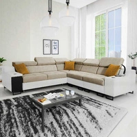 Ecksofa mit Schlaffunktion Alcamo III beige / weiß rechts Funktions-Ecksofa mit Schublade in der Seite zwei Behälter für Bettzeug