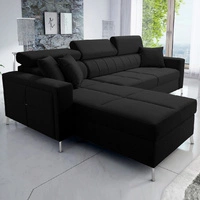 Ecksofa mit Schlaffunktion Luigi VI schwarz linke Seite stilvolles Ecksofa mit Bettzeugcontainer mit weichem Stoff bezogen