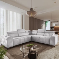 Ecksofa mit Schlaffunktion Castel III grau Esche links Ecksofa mit zwei Bettkästen verstellbare Kopfstützen