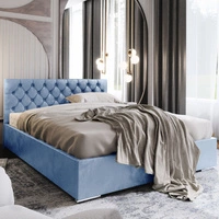 Polsterbett Alvorada 180x200 hellblau mit Staukasten im modernen skandinavischen Stil mit gestepptem Kopfteil