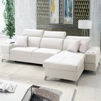 Ecksofa mit Schlaffunktion Elgin ecru rechtes Ecksofa mit verstellbaren Kopfstützen praktische Schubladen in den Möbelseiten