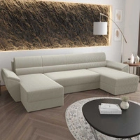 Ecksofa mit Schlaffunktion Fogu U II elfenbeinfarben bequemes Ecksofa mit bequemen Armlehnen interessanter Designcontainer für Bettzeug