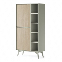 Bücherregal Wald 80 cm Eukalyptus / Beige Fischgrät skandinavisches Design stabil hohe Beine Bücherregal mit Türen für Wohnzimmer geschmackvolles Fischgrätenmuster