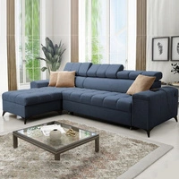 Ecksofa mit Schlaffunktion Bolmso blau linkes Ecksofa mit zwei Bettkästen praktische Schublade in der Seite des Möbels