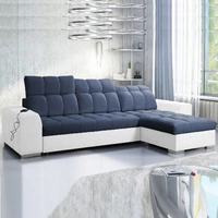Ecksofa mit Schlaffunktion Luigi blau / weiß rechts Ecksofa mit zwei Bettkästen Stoff mit einer interessanten Struktur