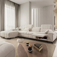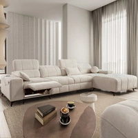 Ecksofa mit Schlaffunktion Penejos XII cremefarben linksseitig stilvolles Ecksofa mit Bettzeugcontainern komfortable verstellbare Kopfstützen