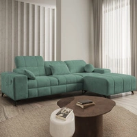 Ecksofa mit Schlaffunktion Penejos grüner rechts elegantes Ecksofa mit Bettzeugablage bequem verstellbare Kopfstützen