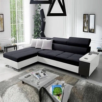 Ecksofa mit Schlaffunktion Alcamo schwarz/weiß rechts elegantes Ecksofa mit einer ausziehbaren praktischen Schublade an der Seite des Möbels