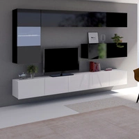 Almiros weiß / weiß glänzend modernes Design push to open Schubladensystem Wohnwand mit Kommode