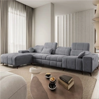 Ecksofa mit Schlaffunktion Penejos XII grau linke Seite stilvolles Ecksofa mit Bettzeugcontainern komfortable verstellbare Kopfstützen