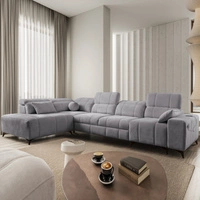 Ecksofa mit Schlaffunktion Penejos VII hellgrau linke Seite stilvolles Ecksofa mit Bettzeugablage komfortable verstellbare Kopfstützen
