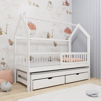 Dyzio Kinderbett 90x190 cm weiß 2-Personen-Ausziehbett für Kinderzimmer Holzhausbett mit geräumigen Schubladen