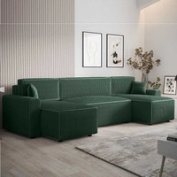 Ecksofa mit Schlaffunktion Brandon U Bis grüner Bettzeugcontainer dreidimensionaler Stoff mit ausdrucksstarken Streifen weiche Armlehnen