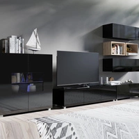 Möbelwand Apulia XXVIII schwarz glänzend / Eiche handwerklich extrem stilvolle Möbelwand einfache Elemente, die in jedes Interieur passen
