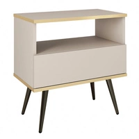 Lovro Nachttisch mit Schublade beige geschmackvolles geriffeltes Dekor idealer Schlafzimmerschrank goldenes Metallzubehör