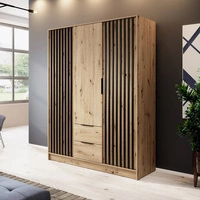 Kleiderschrank Aspen 155 cm Eiche Artisan / Schwarze Lamellen modernes Design Schranktüren mit dekorativen Lamellen