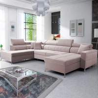 Ecksofa mit Schlaffunktion Luigi VI hellbeige linke Seite stilvolles Ecksofa mit Bettzeugcontainer mit weichem Stoff bezogen