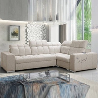 Ecksofa mit Schlaffunktion Fogu II Elfenbein linke Seite stilvolles Ecksofa mit bequemen Armlehnen und Bettzeugcontainer